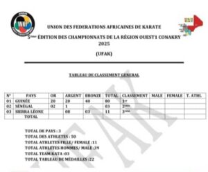 La 5 ème  édition des championnats d’Afrique cadets , Juniors et seniors de karaté de la région ouest 1 UFAK, a été close, ce dimanche 8  Novembre 2025,  au Palais des Sports  à Conakry.
